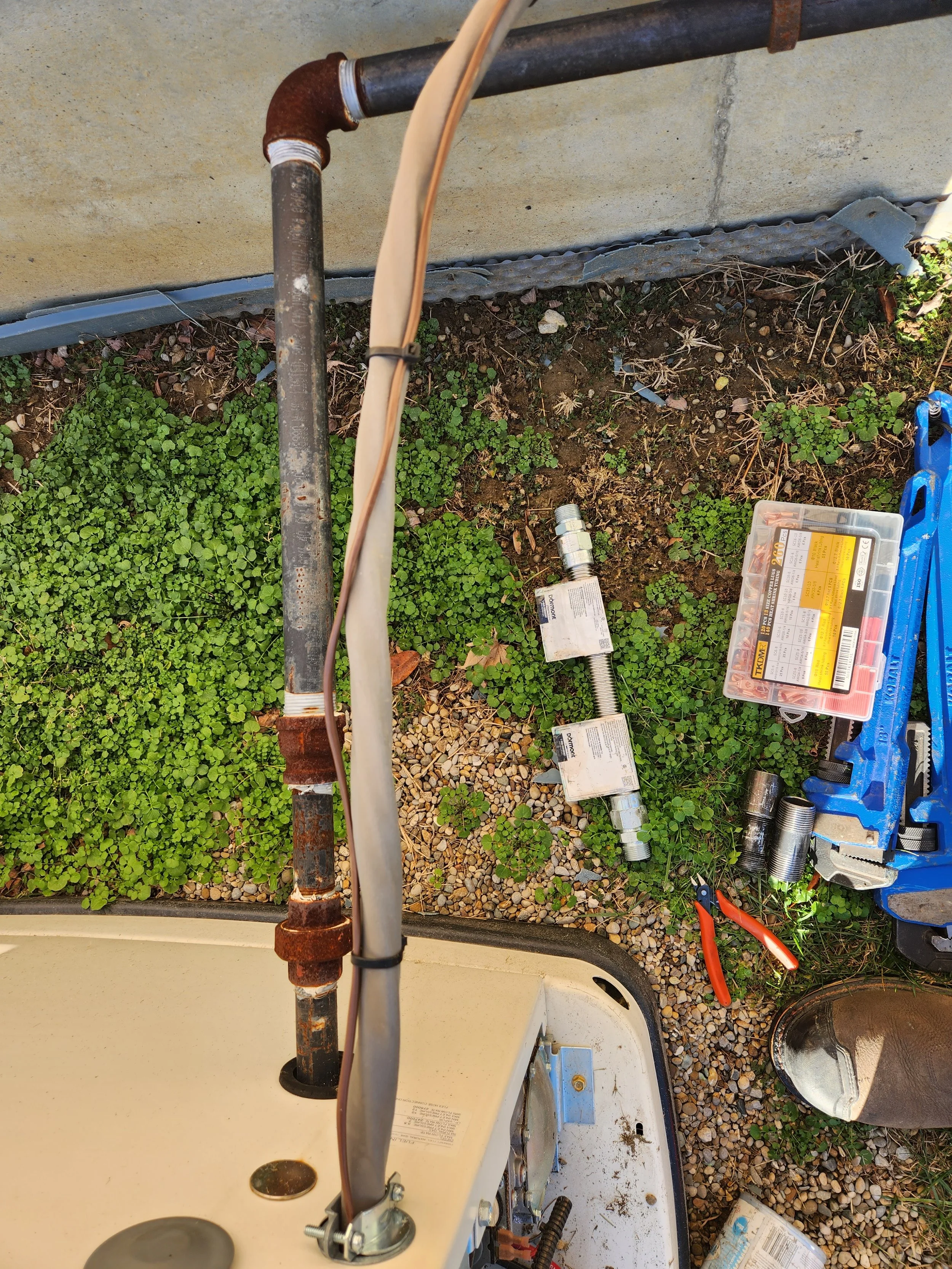 This unit also has its regulator installed too close to the unit. It is also oriented incorrect which could allow water to get into the vent.