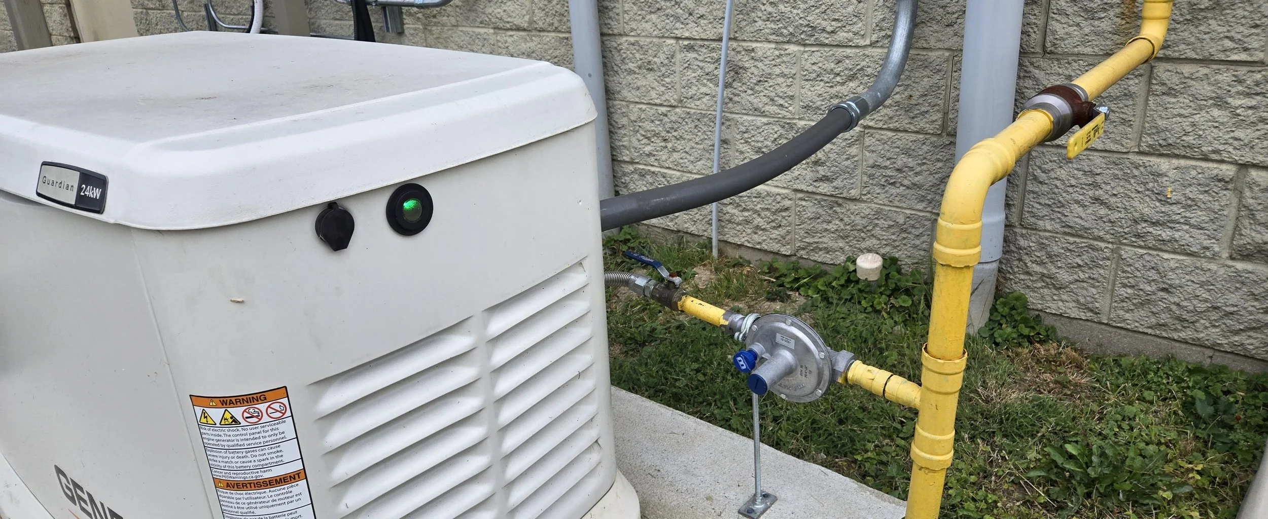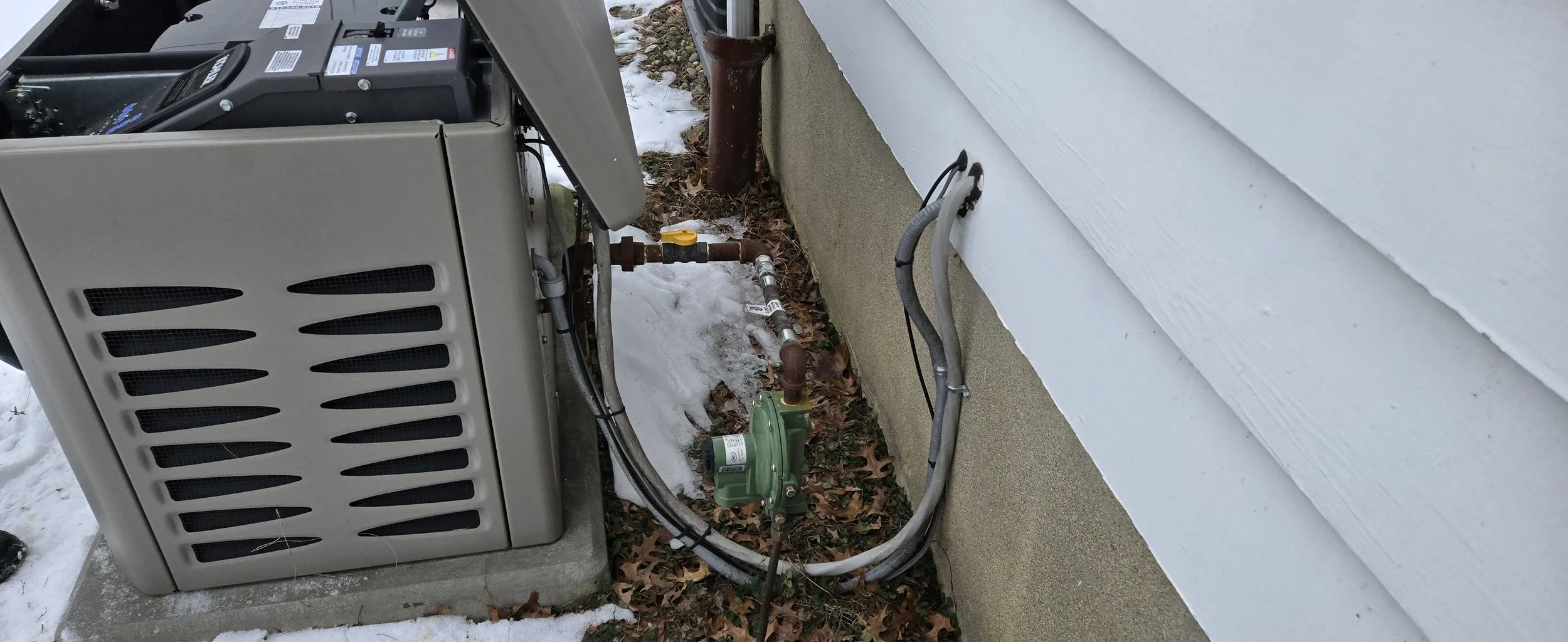 The flex that is on the ground in this picture was left inside the generator housing. The reason we need these flex lines it to isolate vibration. A ridged connection can cause the gas line to fractur! We would also like to see the wiring in conduit. While it is code, it doesn’t look good and will have weathering issues.